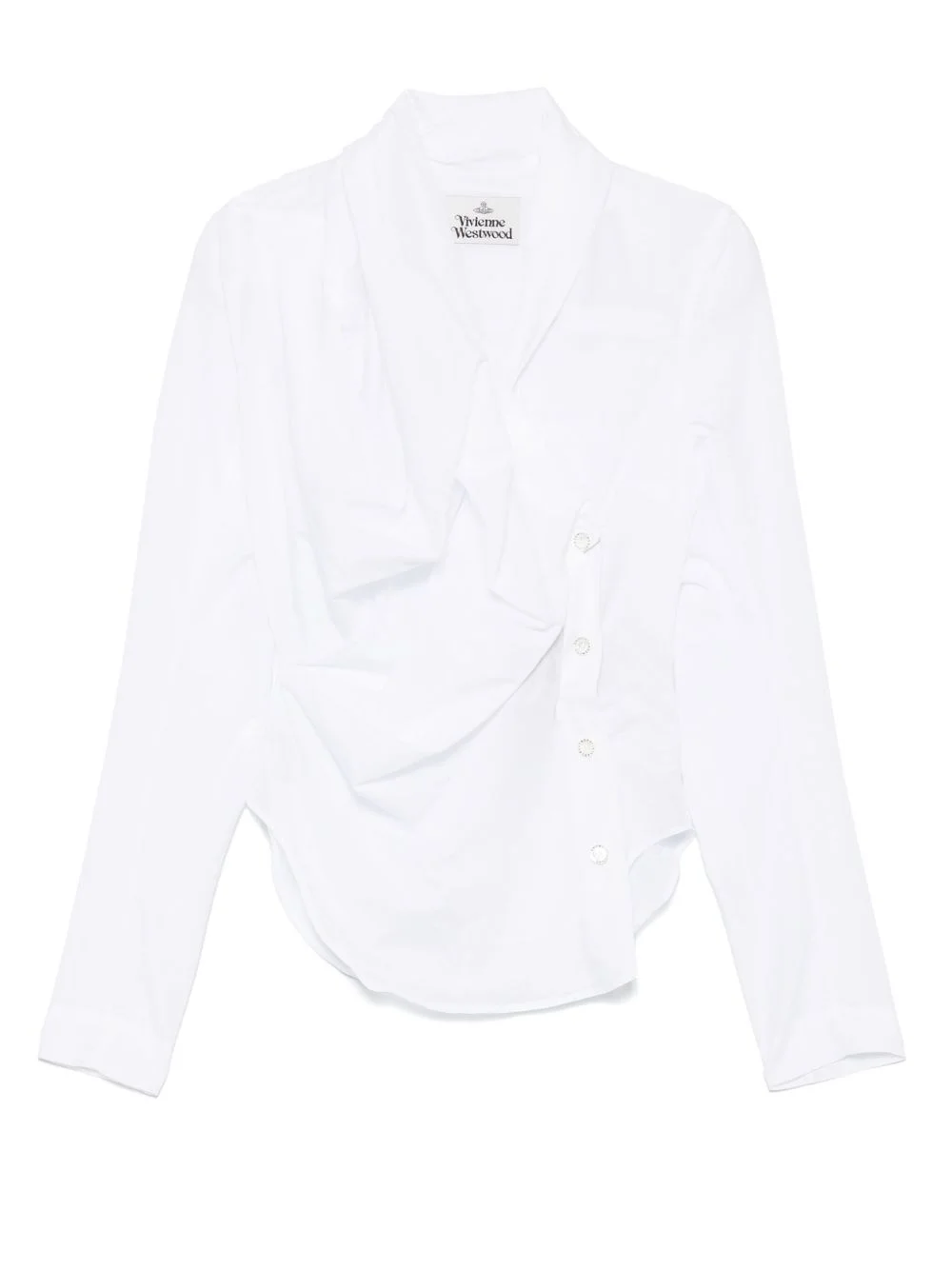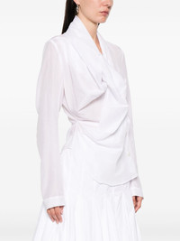 Galatea shirt Highlights - White - Button fastening - Ruched detailing - Wrap design - Long sleeves Made in Italy Composition Cotton 70%, Silk 30% SIZE & FIT Model measurements Height 5 ft 10 in(1.78 m) Bust/Chest 33.46 in(85 cm) Hips 36.22 in(92 cm) Waist 23.22 in(59 cm) FittingInformation Designed for a slim fit that sits just away from the body offering a close yet comfortable fit Made from a lightweight non-stretch fabric