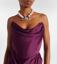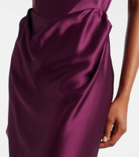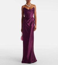 Product Details - Material: 73% acetate, 27% viscose - Care instructions: dry clean - Made in the UK - Designer color name: Plum - Comes with garment bag - Closure: zip and hook fastening - Item number: P01002939 Size & Fit - True to size - Off-the-shoulder - Strapless - Internal boned corset for support - Cinched waist - Non-stretchy fabric - The model seen in the picture is 178cm-5'10" and wearing a size UK 8