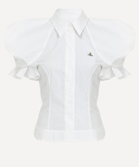 DETAILS Cotton shirt Regular fit Short puff sleeves Point collar Concealed button placket Orb embroidery SIZE & FIT Model is 180cm/5'11"; Chest: 79cm; Waist: 62cm; Hip: 89cm and wears a size 8 COMPOSITION & CARE 100% Cotton Dry clean