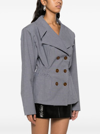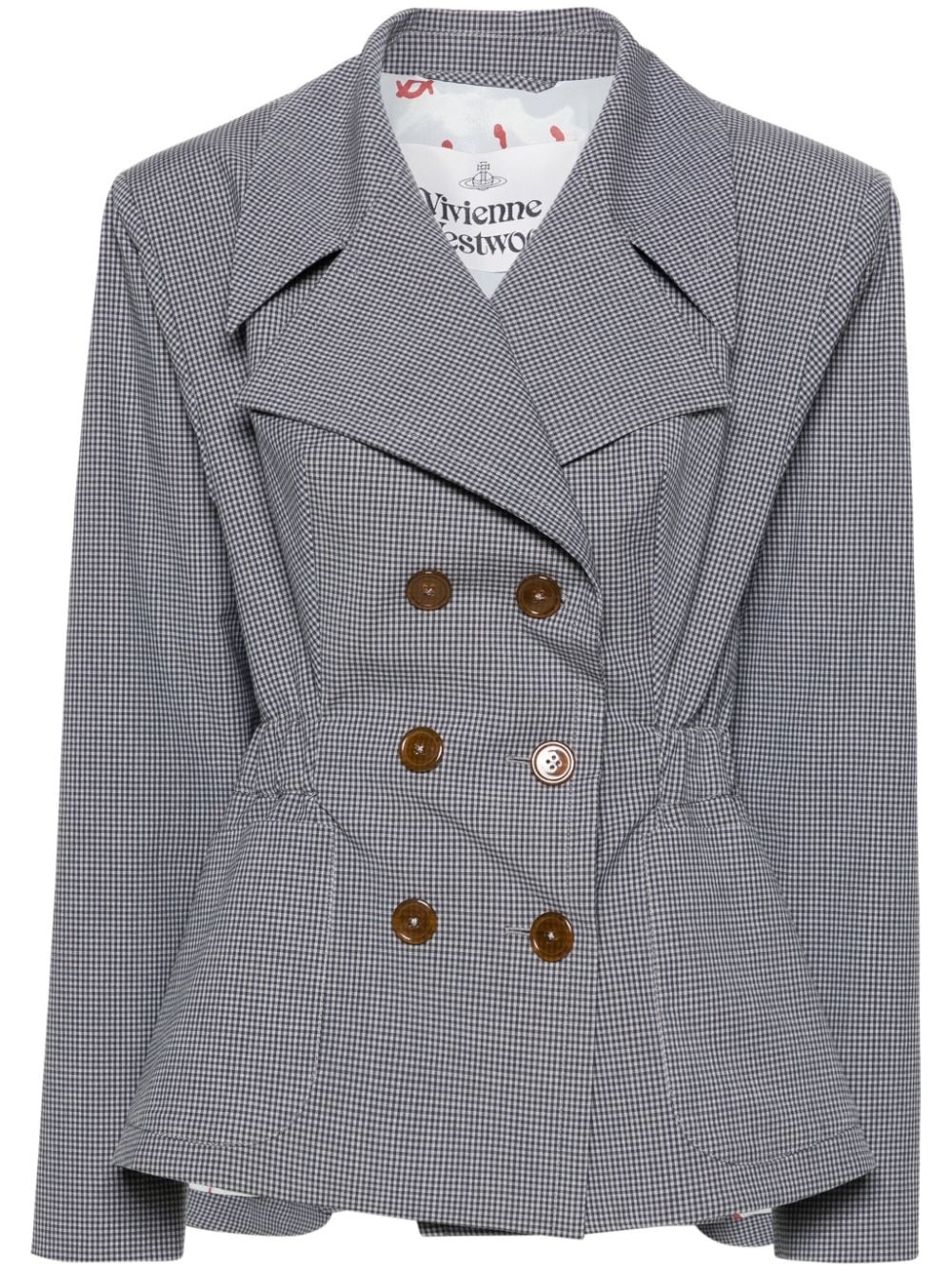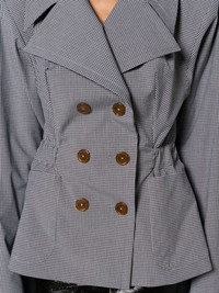gingham-check elasticated-waist blazer Highlights - Black/white - Stretch-cotton - Gingham check pattern - Wide notch lapels - Double-breasted button fastening - Elasticated waistband - Shoulder pads - Long sleeves - Buttoned cuffs - Two side patch pockets - Contrast lining - Straight hem - We've partnered with good on you â an independent agency that rates how brands perform in relation to their impact on the planet, people and animals, with a multi-criteria rating simplified to a five points scale. in order to be awarded our conscious label, larger brands need to score a minimum of four out of five ('good'), while smaller brands must score at least three out of five ('it's a start'). - This item comes from a brand rated three out of five ('it's a start') by good on you at the time it was added on farfetch. please note, this is a brand-level rating and does not guarantee that this product is made with conscious materials. - Learn more about what makes a product conscious on our conscious criteria page Made in Italy Composition Lining: Cotton 100%, Polyester 95%, Spandex/Elastane 5% Outer: Cotton 99%, Elastane 1% SIZE & FIT Model measurements Height 5 ft 9 in(1.76 m) Bust/Chest 31.49 in(80 cm) Hips 36.61 in(93 cm) Waist 24.4 in(62 cm) FittingInformation Designed for a slim fit that sits just away from the body offering a close yet comfortable fit The elasticated waist allows for a comfortable fit Made from a midweight stretch fabric, this piece offers elasticity and flexibility when worn This piece fits true to size – take your usual size