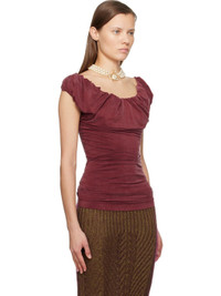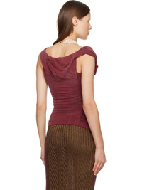 Stretch cupro jersey top. · Draping and fading throughout · Elasticized cowl neck for off-the-shoulder styling · Logo hardware at front hem · Ruching at side seams · Twisting at back shoulder straps Supplier color: Brick 94% cupro, 6% elastane. Made in Italy 252314F110035