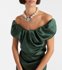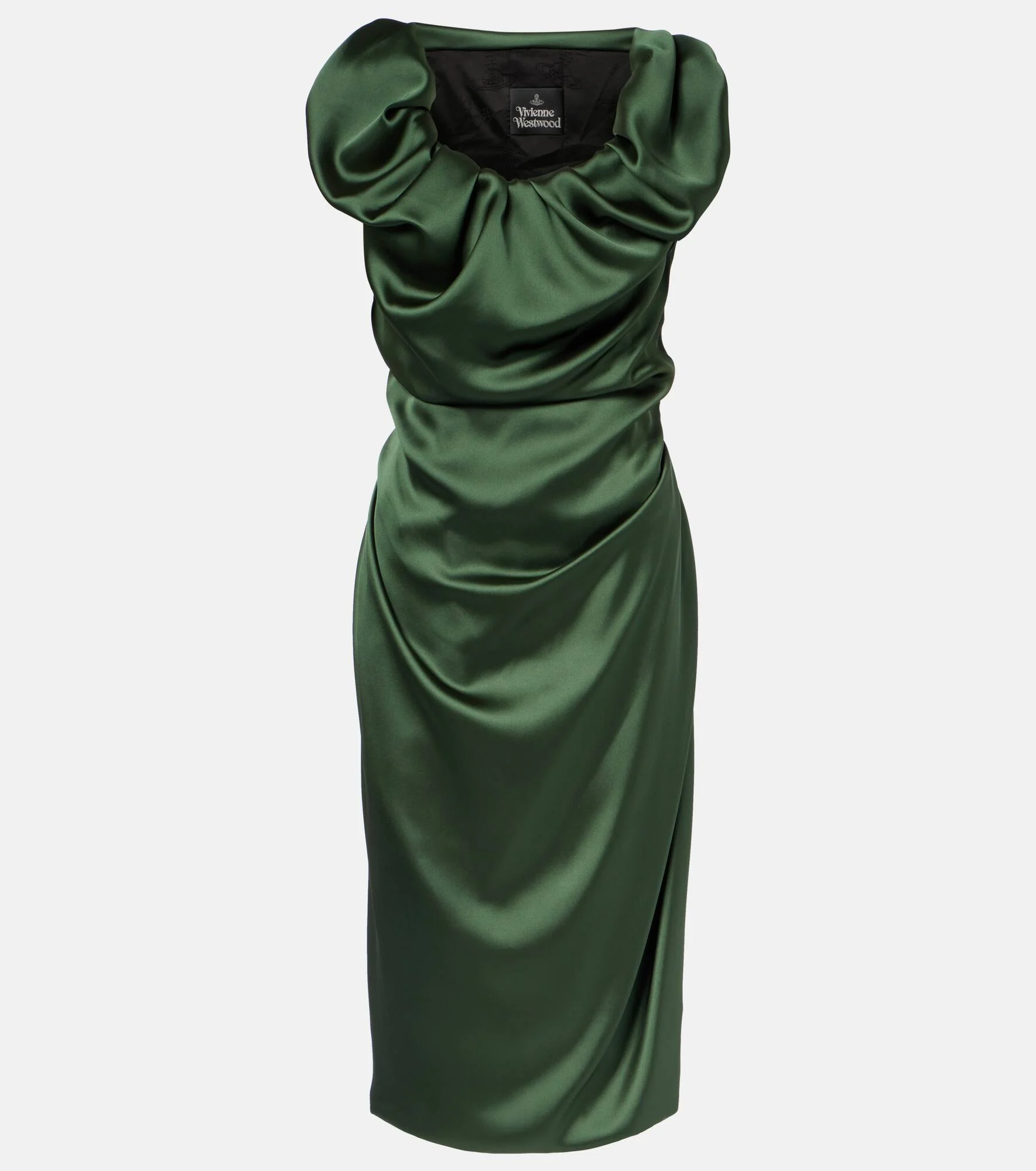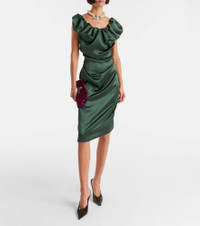 Vivienne Westwood’s designs continue to exemplify the disruptive energy of its late founder – fashion’s original punk pioneer. The Ginnie Amber midi dress is characterized by a ruched neckline and features soft draping throughout the elegant silhouette. Product Details - Material: 100% polyester - Care instructions: dry clean - Made in Italy - Designer color name: Green - Item color: green - Lining: 100% viscose - Short vent - Closure: zipped side - Item number: P01121174 Size & Fit - True to size - Off-the-shoulder - Cinched waist - Non-stretchy fabric - The model seen in the picture is 178cm-5'10" and wearing a size IT 40