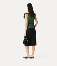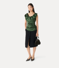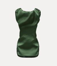 Our signature Ginnie top is reimagined in a luxurious satin finish this season, offering delicate draping that frames the neckline and soft gathers that contour the torso. The silhouette falls smoothly over the hips, complete with the classic Vivienne Westwood label at the neckline. Code: 15050019-W01CA--GREEN - Features a draped neckline - Luxurious satin finish - Sleeveless silhouette - Soft gathered detailing at the chest - Fitted waistline - Subtle ruching along the body - Straight hemline - Vivienne Westwood branded label at the neckline - Model is 5'11/180cm and is wearing a size 40 - Made in Italy COMPOSITION - 100% Recycled polyester