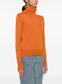 Giulia Orb-embroidered jumper Highlights - Carrot orange - Virgin wool - Fine knit - Signature orb logo embroidery - Roll neck - Long sleeves - Ribbed cuffs and hem Made in Italy Composition Virgin Wool 100% SIZE & FIT Model measurements Height 5 ft 10 in(1.77 m) Bust/Chest 31.1 in(79 cm) Hips 34.64 in(88 cm) Waist 24.8 in(63 cm) FittingInformation Designed for a slim fit that sits just away from the body offering a close yet comfortable fit Made with a midweight knit, this piece offers some stretch This piece fits true to size – take your usual size Washing instructions Hand Wash