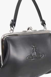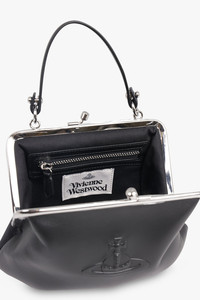 The Granny Frame purse features a vintage-inspired silhouette and a kiss-lock closure, recalling antique coin purses from the early 20th century. The piece receives a soft leather finish, complete with Westwood's classic embossed orb motif, which symbolises tradition, encircled by the celestial rings of Saturn, symbolising the future. Fabrication: 100% Leather Measurements Height 17cm, width 22cm, depth 5cm