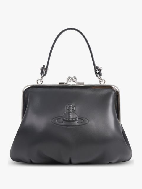 The Granny Frame purse features a vintage-inspired silhouette and a kiss-lock closure, recalling antique coin purses from the early 20th century. The piece receives a soft leather finish, complete with Westwood's classic embossed orb motif, which symbolises tradition, encircled by the celestial rings of Saturn, symbolising the future. Fabrication: 100% Leather Measurements Height 17cm, width 22cm, depth 5cm