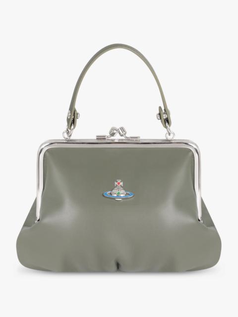 - Fabrication: 100% Lamb leather, lining: - 70% cotton, 30% organic cotton - Polished orb plaque and hardware - Ball-clasp fastening - Fully lined - Embossed inner tab Measurements Height 17cm, Width 22cm, Depth 5cm
