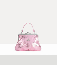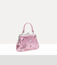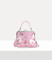This season, our signature Granny Frame purse is reimagined in metallic crinkle-effect leather, drawing from the house’s rich archive. Detailed with an exposed polished framework and a kiss-lock clasp at the top, the piece recalls early 20th-century coin purses. Code: 8053195340255 - Features a zipped interior pocket - Orb motif at the front - Kiss-lock clasp - Soft interior lining - Polished hardware - Top-handle silhouette - Removable chain strap - Woven interior label - Height 17cm, width 22cm, depth 7cm COMPOSITION - Main material: 100% calf leather - Lining: polyester-polyamide blend, printed with the 'Baby Orb' motif