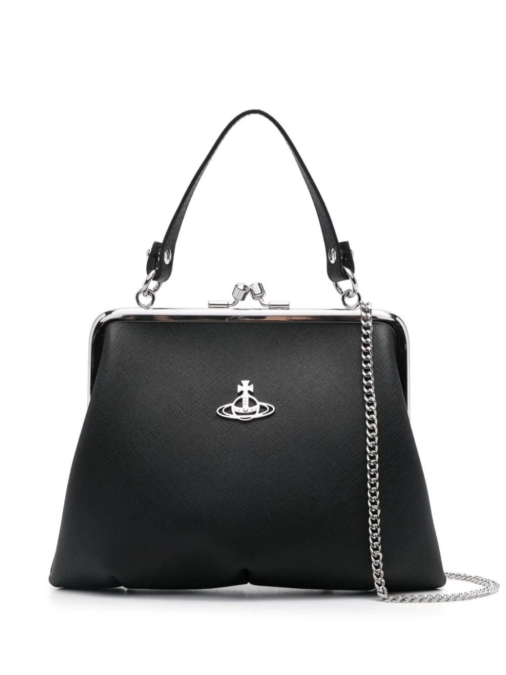 Granny Frame Purse bag Highlights - Black - Faux leather - Grained texture - Single top handle - Detachable chain-link shoulder strap - Metal frame - Signature orb plaque detail - Main compartment - Internal zip-fastening pocket - Internal logo patch - Silver-tone hardware - Kiss-lock fastening - This piece comes complete with a protective dust bag. Made in Italy Composition Outer: Polyurethane 100% SIZE & FIT Model measurements Height 5 ft 10 in(1.78 m) Bust/Chest 32.67 in(83 cm) Hips 35.43 in(90 cm) Waist 23.22 in(59 cm) Measurement DEPTH 1.96 in(5 cm) HANDLE 3.93 in(10 cm) HEIGHT 5.9 in(15 cm) STRAP 43.3 in(110 cm) WIDTH 7.87 in(20 cm)