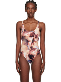 Stretch recycled nylon jersey one-piece swimsuit. · Graphic pattern printed throughout · Scoop neck · Embroidered logo at front waist · Fixed shoulder straps · Full stretch jersey lining Supplier color: Cherubs 78% recycled polyamide, 22% elastane. Made in Italy 251314F103002