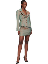 Cotton-blend moire blazer. · Asymmetrical construction · Draping throughout · Modified notched lapel · Button closure · Welt pockets at waist · Buttoned surgeon's cuffs · Central vent at back hem · Logo-woven twill lining Supplier color: Sage green Body: 57% cotton, 43% polyester. Lining: 100% cotton. Made in Italy 252314F057004