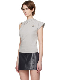 Organic cotton jersey T-shirt. Draping throughout. · Asymmetrical construction · Boat neck · Logo embroidered at chest · Cap sleeves Supplier color: Grey 100% organic cotton. Made in Tunisia 251314F110017