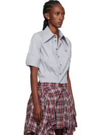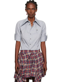 Plain-woven stretch cotton-blend shirt. · Pointed collar · Button closure · Logo embroidered at chest · Tucks at front · Darts at front and back · Shirttail hem · Adjustable button fastening at rolled cuffs · Logo-engraved mother-of-pearl hardware Supplier color: Grey Body: 69% cotton, 28% polyamide, 3% elastane. Trim: 70% viscose, 30% polyester. Made in Romania 251314F109019