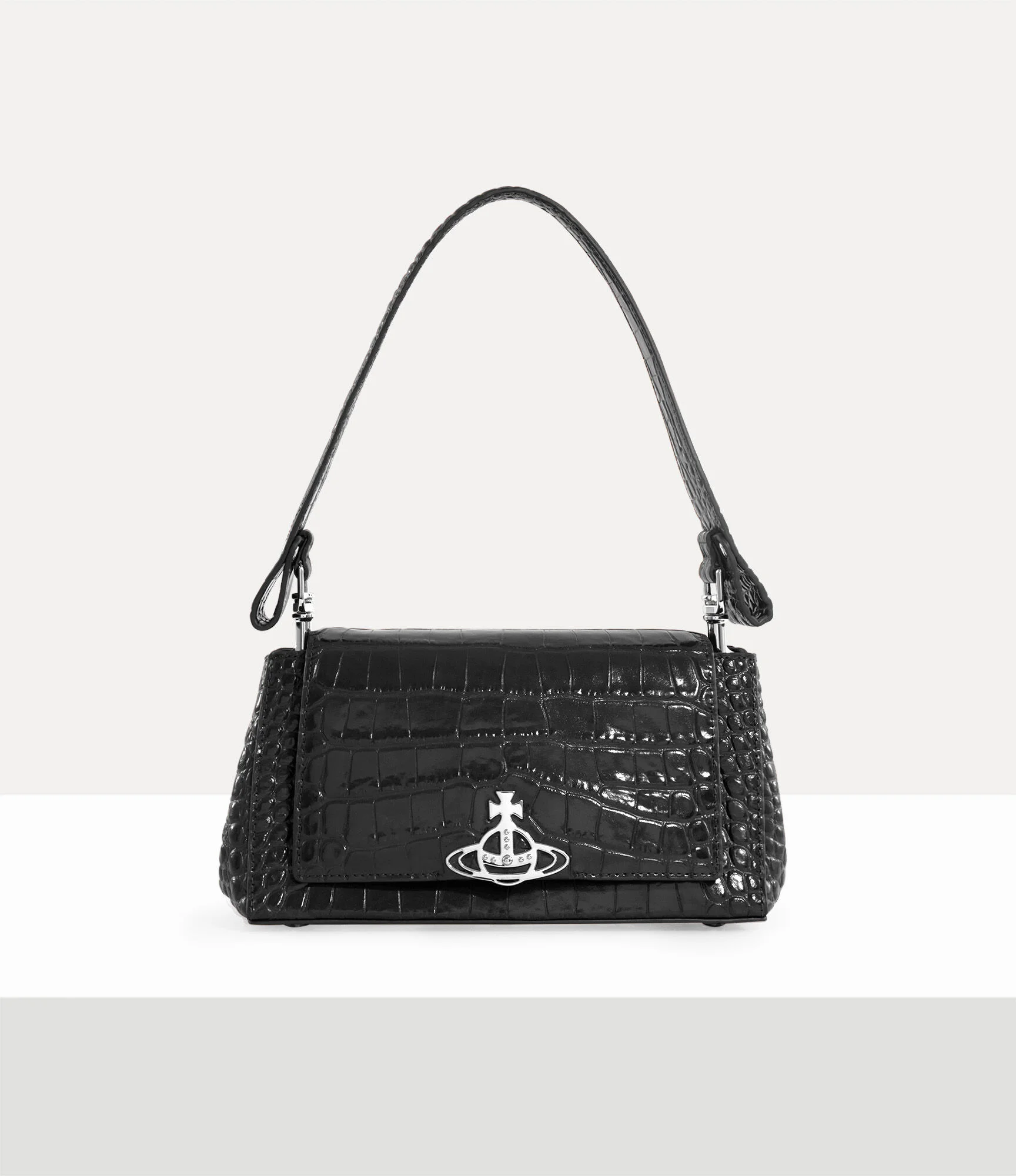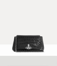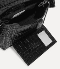 Our medium Hazel bag in this season's leather design features a croc-embossed motif. The piece is finished with a removable chain strap, complete with a silver-tone metal finish, and our line orb branding - evoking Vivienne's vision of launching tradition into the future. Code: 8050889910848 - Magnetic stud fastening - Top-handle silhouette - Three internal card slots - Protective base feet - Shoulder strap - Measurements: height 26cm, width 15cm, depth 11.5cm COMPOSITION - 100% Leather