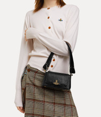 Our Hazel Small handbag is made from lizard-embossed leather and opens to reveal the 'Baby orb' interior lining and vanity mirror. The baguette-style design closes to showcase our metal orb on the front panel. Code: 8050889589884 - Lizard embossed finish - Magnetic stud fastening - Three internal card slots - Internal embossing - 'Baby Orb' interior lining - Removable straps - Silver-plated line orb plaque - Protective base feet - Measurements: 19cm x 11cm x 8.5cm COMPOSITION - 100% Calf leather - Interior lining: 68% recycled cotton, 32% cotton - The leather used has been awarded against the LWG Environmental Auditing standards designed to provide a measure of compliance and performance capabilities of the leather business.