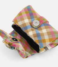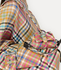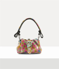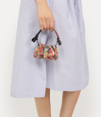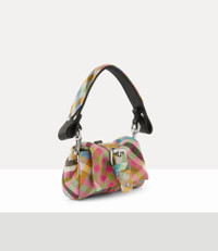 Our Hazel Treasure Charm handbag reimagines the house’s signature ‘Hazel Treasure’ design, offering this season’s vibrant woollen ‘Heather Check’ motif. Crafted with a sculptural belt strap that wraps around the softly structured silhouette, the piece is finished with our bas relief orb emblem at the front. Code: 8053195379668 - Features a compact, sculptural shape - Gathered fabric detailing - 'Heather Check' motif - Metal hardware - Short shoulder strap - Belt detail - Bas relief orb motif - Removable chain strap - Weight: 290g - Dimensions: 11cm, 8cm, 4cm COMPOSITION - 100% Wool