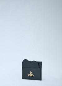 Card holder in textured leather with heart-shaped top. - Heart-shaped top - Gold-tone logo plaque - One main compartment - 16% Polycotton 30% RePolycotton 54% Polyurethane - Color: Black - Code: 54030008W-S000B-001