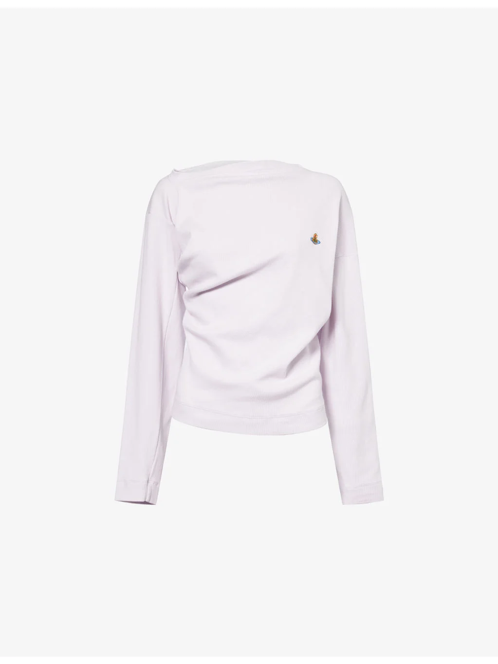 PRODUCT DETAILS - Vivienne Westwood stretch-cotton top - 95% cotton, 5% elastane - Regular fit, straight-across neckline, long sleeves, orb embroidery at front, draped at front, all-over ribbed - Machine wash at 30°C - Made in Tunisia - True to size - Model is 5ft 10in/1.78m and wears a size small - Midweight, stretchy Ref: R04561977