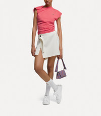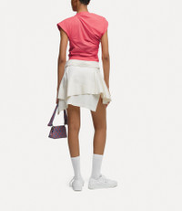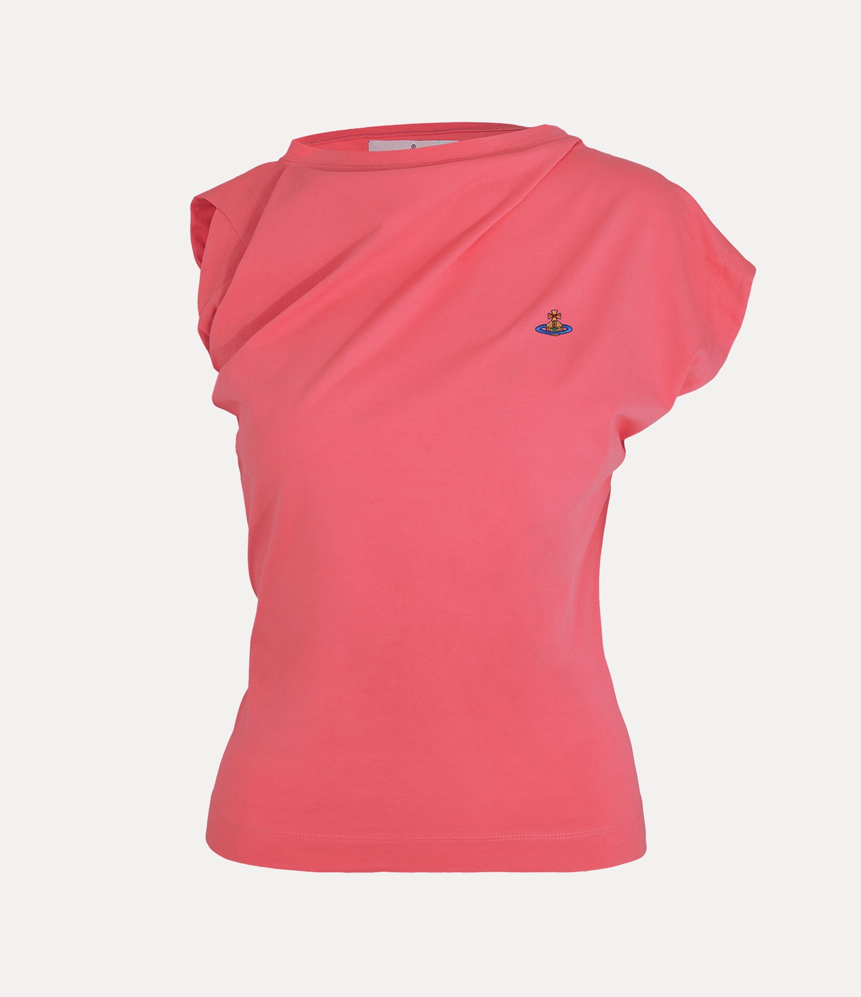 The house's signature Hebo top has been updated this season, featuring a soft cotton finish and a multicoloured orb embroidered on the left-hand side of the chest - synonymous with Vivienne's vision of launching tradition into the future. The silhouette incorporates Vivienne's archival tailoring systems, complete with a slash-inspired neckline, drape details and twisted fabric at the back of the design. Code: 1504000A-J001M--HIBISCUS - Features an embroidered orb motif - Asymmetric sleeves - Gathered side detailing - Darting at the back - Tonal stitching - Model is 5'10/178cm and is wearing size S COMPOSITION - 100% Cotton