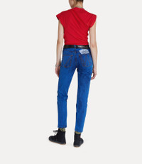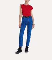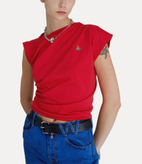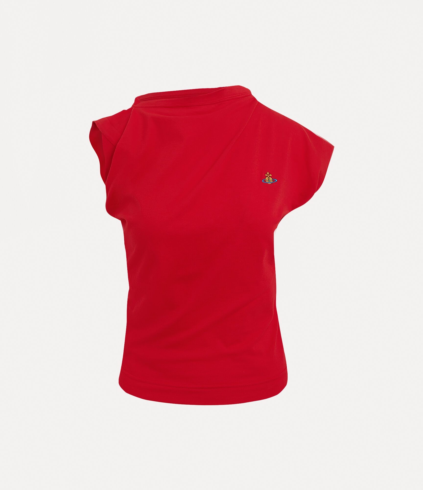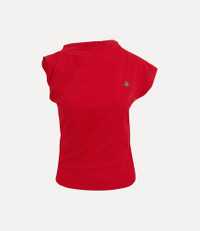 Our Hebo top in cotton with short, asymmetric sleeves features an orb on the left-hand side of the chest, which has been used throughout our brand's history since the 1980s. Code: 1504000A-J004A--RED - Round neckline - Tonal stitching - Boat neckline - Gathered side detailing - Straight hemline - Model wears a size S COMPOSITION - 100% Cotton