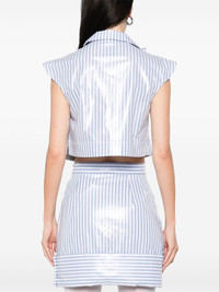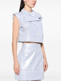 Honor shirt Highlights - Sky blue - Front button fastening - Short side slits - Sleeveless - Vertical stripe print Made in Italy Composition Cotton 95%, Polyurethane 5% SIZE & FIT Model measurements Height 5 ft 10 in(1.78 m) Bust/Chest 33.46 in(85 cm) Hips 36.22 in(92 cm) Waist 23.22 in(59 cm) FittingInformation Designed to be unstructured, offering a loose fit throughout Made from a midweight non-stretch fabric