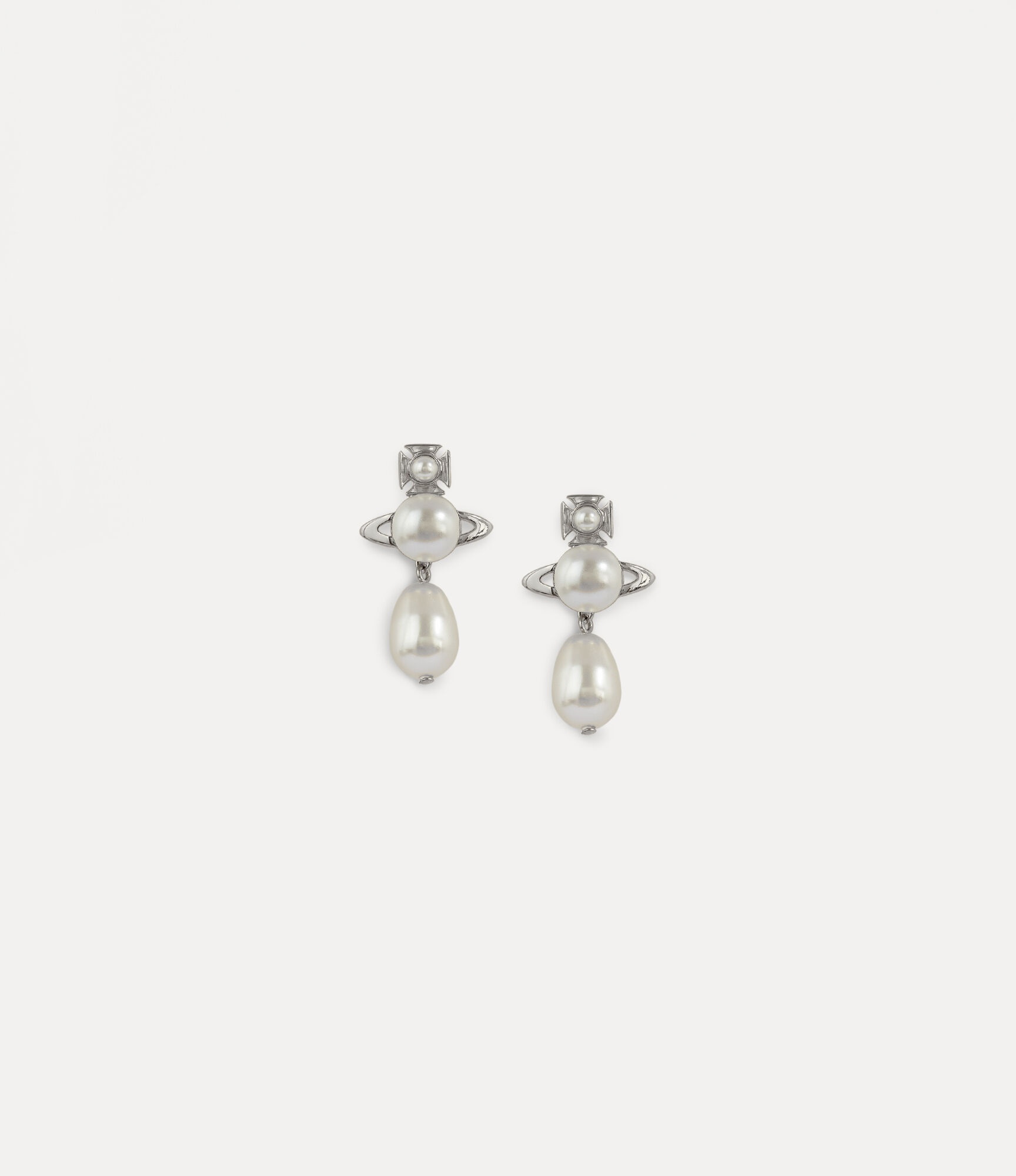 Vivienne Westwood's Inass Earrings are a testament to the brand's love of pearls. They are finished in silver-tone plating and dropped with lustrous cream pearls that can be detached to wear as a simple stud. Please note that we do not accept return on earrings. Material Brass Code: 62020104W101W101 Details & Features H 3cm x W 1.5cm