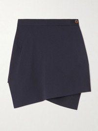 Infinity asymmetric wool-twill mini wrap skirt Navy