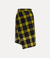 Our Infinity Midi skirt is offered in the 'Moonshine' tartan this season, complete with vibrant hues and the house's engraved amber-coloured button fastening. The piece features a high waistband that delicately wraps around the hips, forming an asymmetric hemline. Code: 1K01002D-W0175--NAVY-YELLOW - Features an orb-jacquard lining - Fits true to size, please take your normal size - Concealed zip fastening - Button fastening - Midi-length style - Made in Italy COMPOSITION - 100% Wool