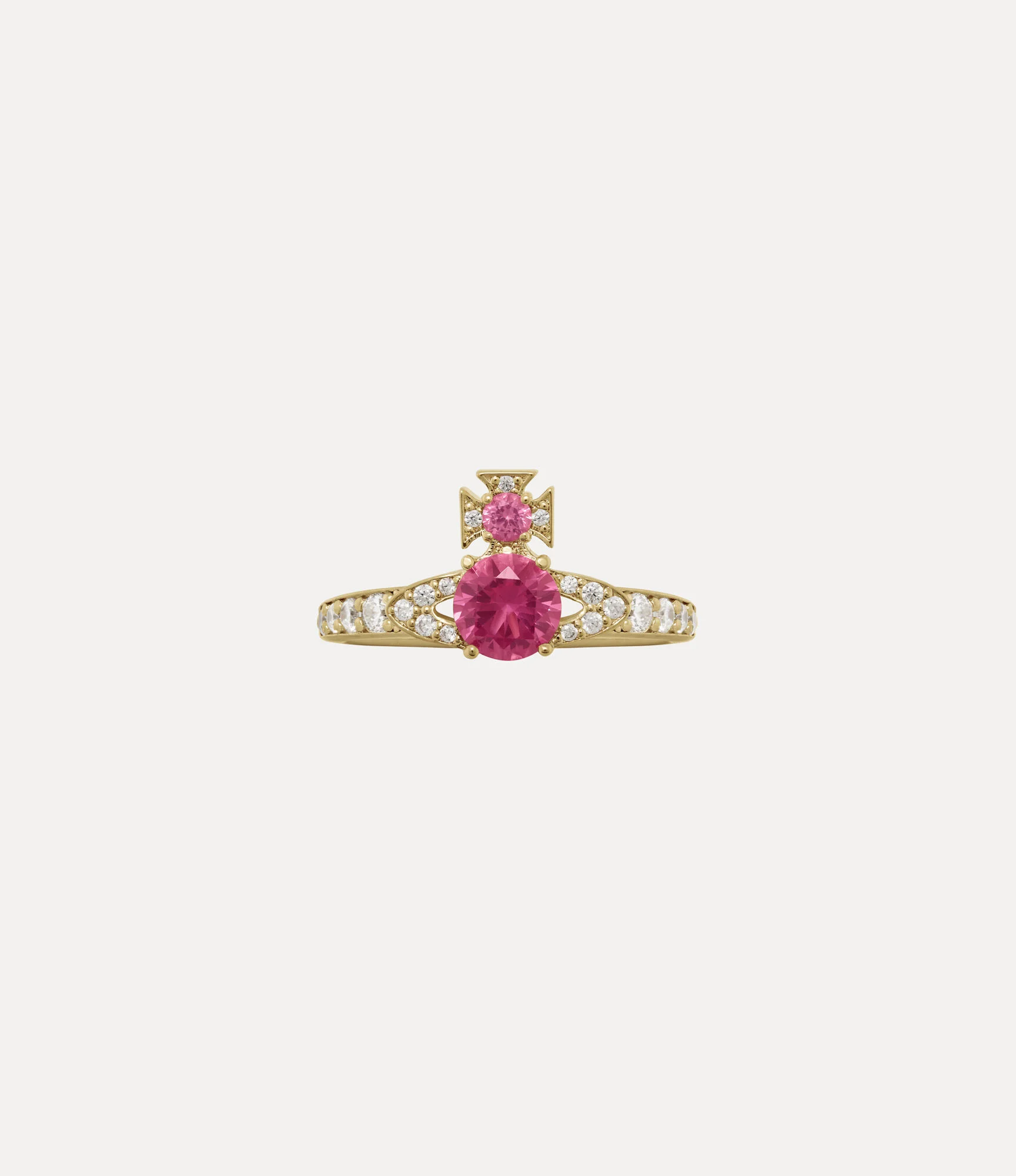 The Ismene ring is offered in recycled silver this season, complete with a polished, gold-tone finish and a crystal-encrusted slim band. The piece features a glistening pink crystal in the centre of the orb-shaped face, which symbolises tradition, encircled by the celestial rings of Saturn, representing the future. Code: 6404017L-01R989--GOLD-ROSE-WHITE-CZ - Features a polished finish - Tapered band - Pave-set crystals - Cut-out detailing - Engraved inner band - Lightweight design - White and pink crystals - Weight: 3.5g - Orb length 2.7cm, orb height 1cm COMPOSITION - Main material: 100% recycled silver - Crystal detailing - Gold-tone plating - We plate all our sterling silver products, as this prevents tarnishing and increases durability.