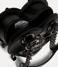 Our Juliet Heart chain bag is a new style this season, defined by a heart-shaped silhouette inspired by the house’s classic Josephine Heart bag. Crafted from python-effect embossed leather with a metallic foil finish, it features a single-compartment design accented with chunky hardware, reminiscent of the Archive Orb bag, and is finished with a three-dimensional orb motif at the centre. Code: 8053195378852 - Features a top handle silhouette - Python-effect embossed leather - Archival silhouette - Three-dimensional orb motif - Tonal stitching - Chain handles - Zip-around fastening - Polished hardware - Made in Italy COMPOSITION - Main material: 100% calf leather - Interior lining: 70% recycled cotton, 30% cotton