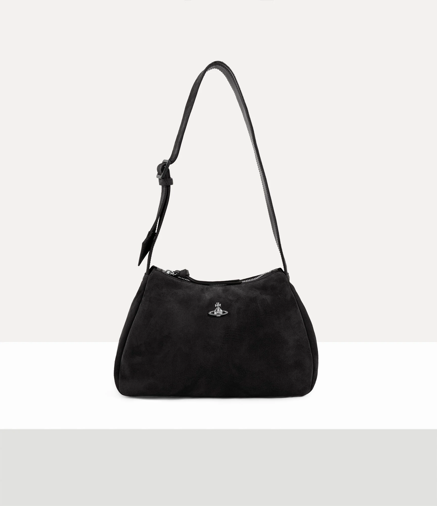 Our Kate Shoulder bag is shaped into a soft, crescent silhouette, inspired by a style once worn by Kate Moss in the early nineties. The piece receives our signature 'Broken Pinstripe' lining, a unique twist on the traditional pinstripe pattern, first seen in the Vivienne Westwood Gold Label Autumn-Winter 2015 collection. Code: 8053195322909 - Features gunmetal-tone hardware - Three-dimensional orb motif - Strap offers an adjustable slider - Secure top-zip opening - Knotted zip pull - Soft, suede finish - Compact silhouette - Length 30cm, height 18cm, depth 8.cm - Made in Italy COMPOSITION - 100% Calf leather