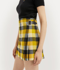 The Mini kilt, a signature piece of the house, is crafted from wool and reimagined in this season's vibrant 'Pixel' check motif. The A-line silhouette features a high-rise waistband that flows into a pleated finish, with adjustable buckle tabs on each side for a tailored fit. Code: 1F020006-W018Q--PIXEL-CHECK - Features an A-line design - Pixel check - Mini-length silhouette - Pleat details - Adjustable buckle tabs - Tonal stitching - Total length 37cm - Made in the United Kingdom COMPOSITION - 100% Wool
