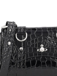 Kimmy shoulder bag Highlights - Black - Embossed crocodile effect - Adjustable detachable shoulder strap - Orb plaque - Silver-tone hardware Made in Italy Composition Outer: Calf Leather 100%