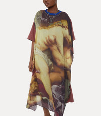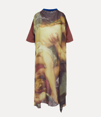 Our Kiss Swing dress in a viscose-stretch fabric features a contrasting ribbed neckline with an asymmetric hemline. The enlarged Swing artwork is offered as a background against the printed handwritten-style doodles. Code: 11020010-C0041--BROWN - Fits true to size - Dropped shoulders - Tonal stitching - Short sleeves - Lightweight - Model is wearing a size S COMPOSITION - 95% Viscose - 5% Elastane