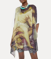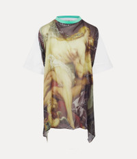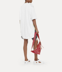 Our Kiss Swing top with asymmetric front and back panels features an enlarged version of 'The Swing’ artwork printed on the design, which is offered as a background against the handwritten-style doodles. The design incorporates a round, ribbed neckline and short sleeves, finished with dropped shoulders. Code: 1504000L-C0040--WHITE - Printed artwork - Tonal stitching - Asymmetric hemline - Ribbed neckline - Oversized fit - The female model is 5'11/180cm and is wearing a size S. COMPOSITION - Front fabric: 100% viscose - Secondary fabric: 100% organic cotton