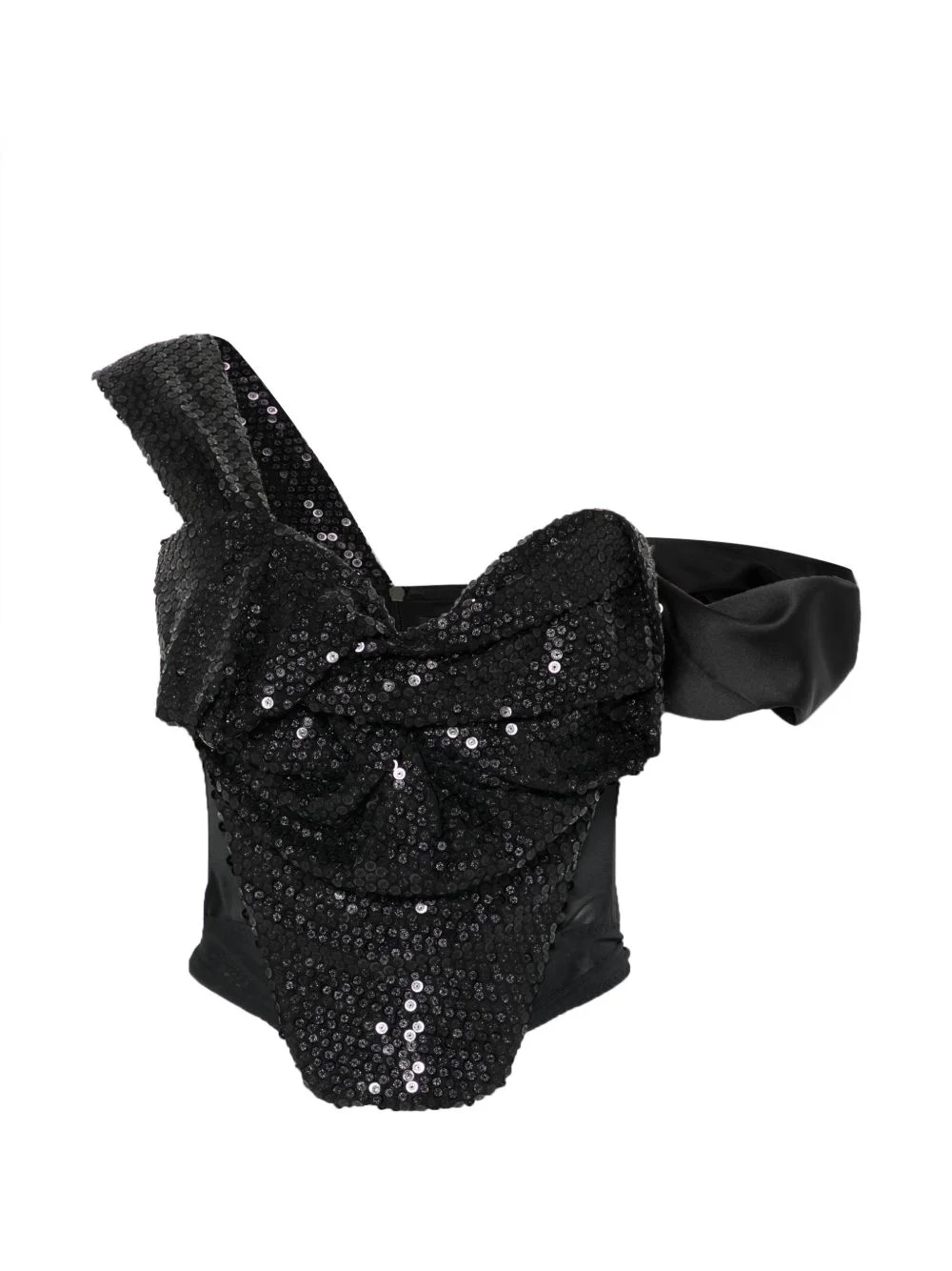 Knot sequin embellished corset top Highlights - Black - Knot detail - Sequin embellishment - Boned - Fitted silhouette Made in Italy Composition Polyester 100%, Polyamide 95%, Elastane 5% Washing instructions Dry Clean Only