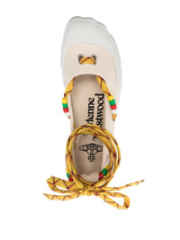 lace-up ballerina sneakers Showing the brand's creative bold aesthetic, these ballerina sneakers feature an beige design enhanced with colourful beads on the sides. The pair sits atop a comfortable rubber sole and is secured by yellow laces at the ankle. Highlights - Beige - Cotton - Bead detailing - Lace-up detailing - Branded insole - Rubber sole Imported Composition Sole: Rubber 100% Outer: Fabric 100% Lining: Fabric 100% SIZE & FIT Measurement HEEL 0.98 in(2.5 cm) Sole height 0.78 in(2 cm)