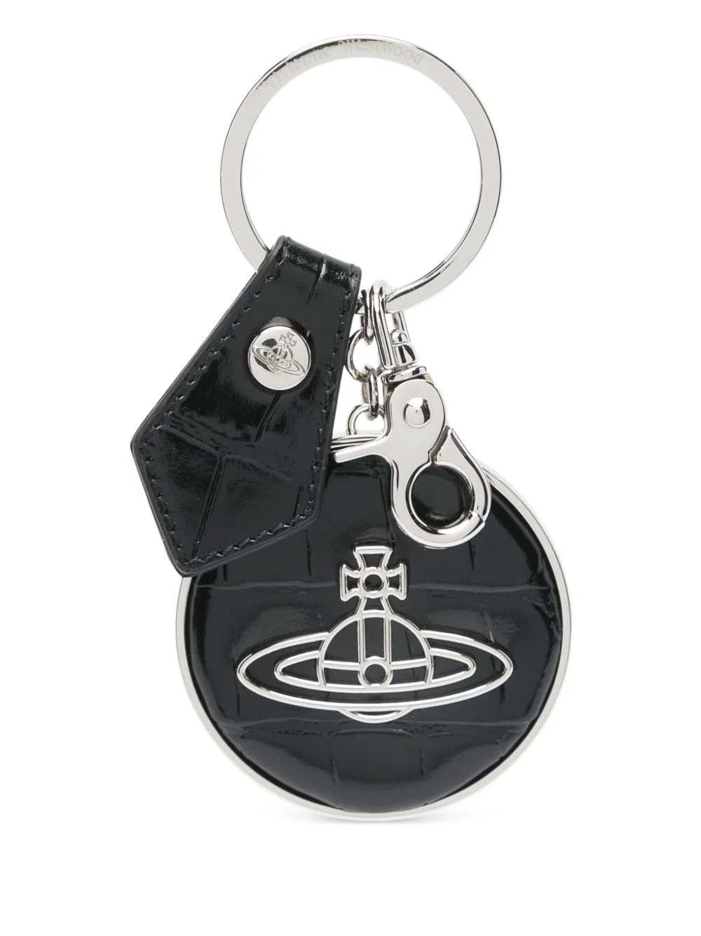 Orb-applique keyring Highlights - Black - Lobster claw fastening - Split-ring fastening - Logo-debossed patch to the rear Made in Italy Composition Metal 100%, Calf Leather 100% SIZE & FIT Measurement LENGTH 6.88 in(17.5 cm) WIDTH 2.48 in(6.3 cm)