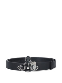 Orb-buckle leather belt Highlights - Black - Leather - Signature orb buckle - Silver-tone hardware - Pin buckle fastening Made in Italy Composition Calf Leather 100% SIZE & FIT Measurement TOTAL LENGTH 45.27 in(115 cm) WIDTH 1.96 in(5 cm)