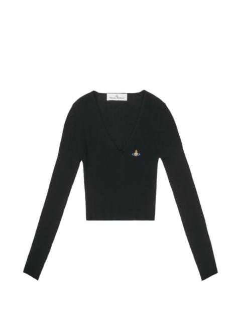 logo embroidery V-neck sweater