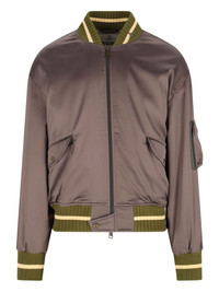 zip-fastening ribbed-trim bomber jacket Highlights - Taupe - Zip fastening - Ribbed trims - Welt pockets - Patch pocket - Orb emblem Imported Composition Acetate 74%, Polyamide 23%, Elastane 3% Washing instructions Read Manufacturer Guidelines