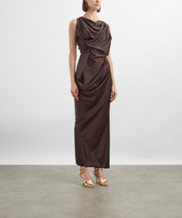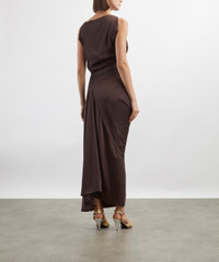 DETAILS Maxi dress Lightly crinkled satin fabric Column silhouette Sleeveless Draped neckline Gathered draping Cinched waist Asymmetric hemline Concealed zip fastening SIZE & FIT Model is 178cm/5'10"; Chest: 77cm; Waist: 65cm; Hip: 92cm and wears a size 8 COMPOSITION & CARE 100% Rayon Dry clean