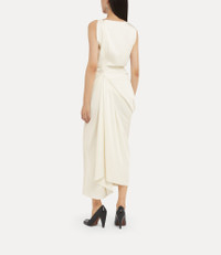 The Long Fond dress features elegant drapery at the neckline and waist, falling into an elongated column silhouette with an asymmetric hemline. Detailed with additional draping at the back, the piece fastens with a concealed side zip closure for a smooth finish. Code: 110103A5-W01AD--IVORY - Features a maxi-length silhouette - Sleeveless cut - Draped neckline - Gathered draping - Cinched waist - Column silhouette - Asymmetric drape - Concealed zip - Minimalist design - Satin finish - Model is 5'9/177cm and is wearing a size 40 - Made in Italy COMPOSITION - 100% Recycled polyester