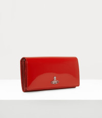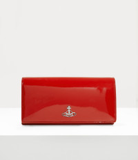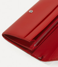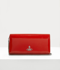 Our Long wallet features a silver-tone chain strap, complete with interior card slots and a zipped coin compartment. The patent finish takes inspiration from the liquid latex and rubberwear sold in our iconic Sex boutique, while the orb on the front panel is synonymous with Vivienne's vision of taking tradition into the future. Code: 8050889914679 - Press-stud fastening - Fourteen card slots - Note slots - Internal zip fastening - Coin compartment - Line orb stud - Measurements: height 11cm, width 19cm, depth 4cm - Removable chain measures 54.5cm COMPOSITION - 100% Leather