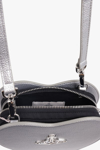 A modern take on the house’s iconic heart silhouette, the Louise Heart Crossbody Bag in Silver features a grained polyurethane finish that adds subtle texture to its sculptural curves. The metallic Line Orb at the front offers a sleek, contemporary accent, while the compact interior lined in recycled cotton keeps essentials organised. A removable chain strap allows effortless crossbody or handheld styling. Fabrication: 100% Polyurethane; Interior lined in 100% recycled cotton Grain-embossed texture for added depth Heart-shaped silhouette with zip-top closure Metal Line Orb motif at the front Tonal stitching throughout Silver-tone plated brass hardware Removable chain strap for versatile styling Made in Italy Style it with sleek monochrome pieces or a minimal evening look to highlight its radiant, contemporary charm. Measurements Height: 19.5cm, Width 17cm, Depth: 7cm
