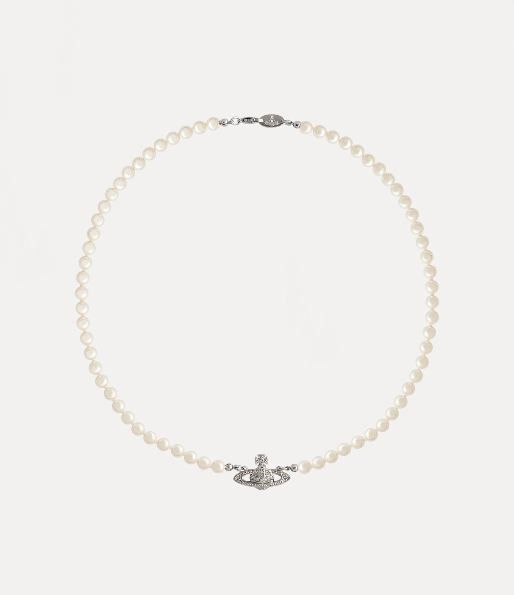 Detailed with crystals, the silver-tone Man. mini bas relief pearl necklace features our orb in the centre of a string of hand-knotted Swarovski pearls and fastens at the back with a lobster clasp. Material 100% Brass Code: 6301010002P104P104 Details & Features Chain length: 51cm Orb dimensions: H 2cm x W 3cm