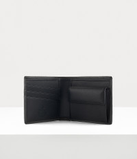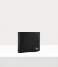 Our Man. Wallet in PU leather showcases a grain-embossed texture with the phrase 'Vivienne Westwood' inscribed on the interior panel. The piece features a snap-fastening coin pocket with three integrated card slots, finished with a dedicated compartment for receipts and notes. Code: 8050889912941 - Features a metal orb stud - Three credit card slots - One note slot - Press-stud coin compartment - Tonal stitching - Height 9.5cm, width 10.5cm, depth 1cm - Made in Italy COMPOSITION - 100% Polyurethane