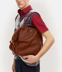 Our Mara Large holdall is crafted from soft leather and emulates an archival style, first seen in the Vivienne Westwood 'On Liberty' collection. Originally named after Andreas Kronthaler's mother, the design features our elevated 'Silhouette Orb' branding. Code: 8053195301294 - Features a zipped interior pocket - Gunmetal-tone hardware - Soft silhouette - Top handles - Dual zip-fastening - Lined interior - Unisex design - Oversized tote shape - Folded side panels - Snap-buttons tabs at the base - Height 51cm, width 43cm, depth 28cm - Made in Italy COMPOSITION - Main material: 100% cow leather - Ottoman lining: 55% viscose, 45% polyamide - Hardware: brass
