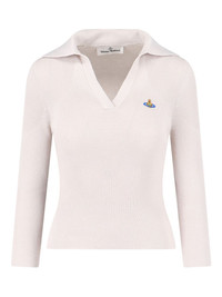 orb-embellished ribbed sweater Highlights - Cream - Ribbed texture - Polo collar - Long sleeves - Orb emblem Made in Italy Composition Organic Cotton 85%, Cashmere 15% SIZE & FIT FittingInformation Designed for a close fit throughout Made with a midweight knit, this piece offers some stretch Washing instructions Read Manufacturer Guidelines