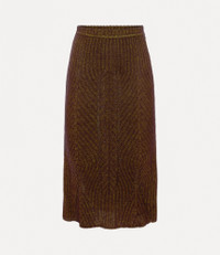 The mid-length Mary skirt is crafted from a silk-mohair blend and features a unique mix of herringbone and rib-knit stitches. The design offers a ribbed waistband and a subtle A-line silhouette, shaped by the knit structure. The multi-colored embroidered orb on the hemline reflects the house's ethos of taking the past into the future. Code: 1802001Z-Y003Z--GOLD - Slim fit design - Mid-length design - The model is 5'11/180cm and wearing a size S - Made in Italy COMPOSITION - 72% Silk - 28% Mohair
